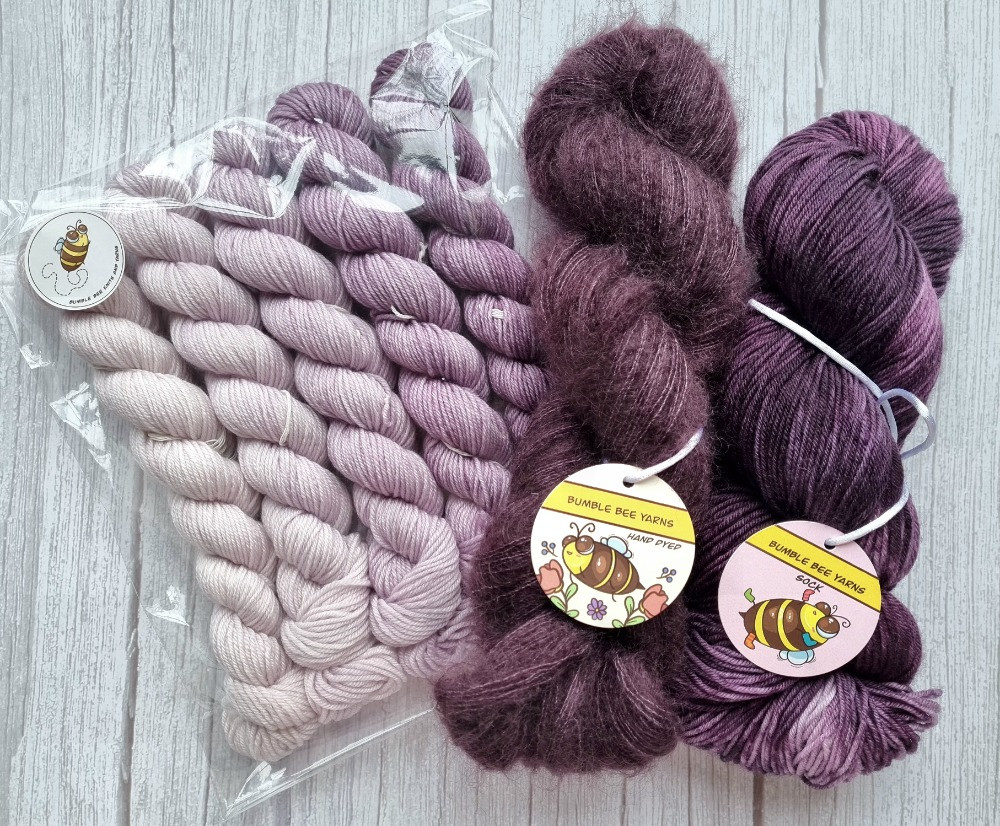 Home » Hand Dyed Yarns » Bumble Bee Yarns - Sock Sets » Aubergine Mini Set - Hand Dyed Yarn